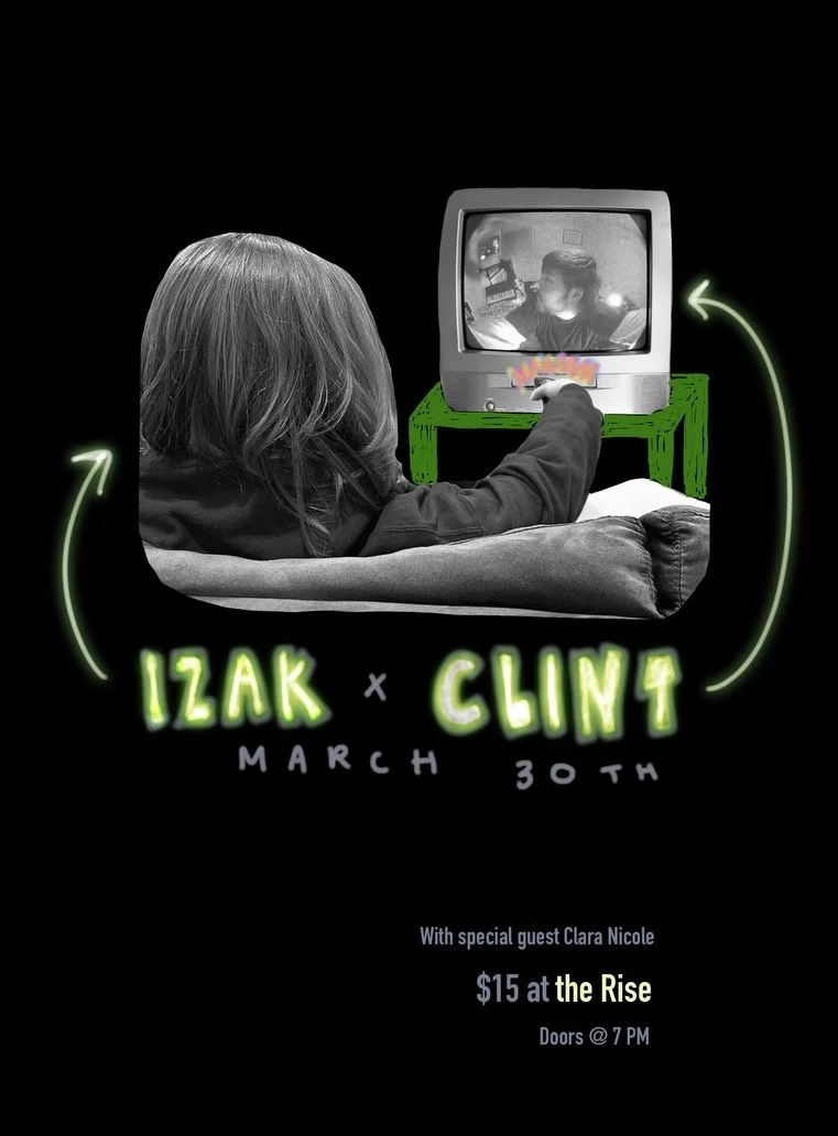 Upcoming events. Mar 30 Clara Nicole x IZAK x CLINT @ The Rise (Provo, UT) Saturday, March 30, 2024 7:30 PM 10:00 PM Google Calendar ICS Doors at 7:00 View Event → Nov 3 New Single “leaves” Out November 3 Friday, November 3, 2023 11:55 PM 11:55 PM Google Calendar ICS New Single “leaves” Released! View Event →